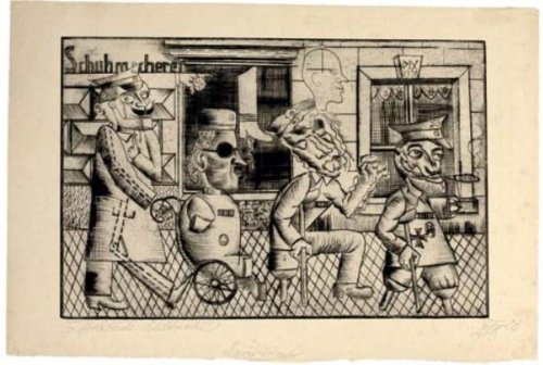 Otto dix est un peintre allemand 1891 1969 qui appartient aux courants artistiques de l expressionnisme et de la nouvelle objectivité. Maître de l expressionnisme allemand il réalise entre 1920 et 1924 sous l influence de grosz une œuvre dans laquelle il prône son anti militarisme sa haine de la guerre dans un style pathétique et violent. La guerre en allemand.