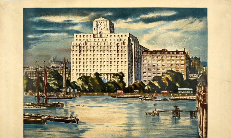 Original Vintage Poster Painting Of Shell Mex House River Thames